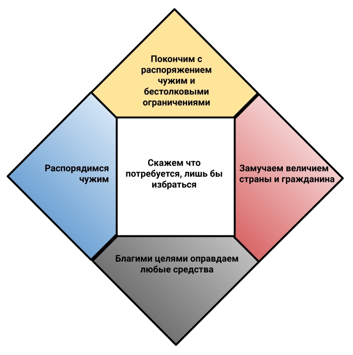 Правые, со всеми их ценностями, будь то истинными да вечными или выдуманными вчера, рано или поздно начинают давить на людей, подключая к своей морали строительство империй. Левые тяготеют к отрицательному отбору и непременно губят все, с чем соприкасаются. Центристам бывает непросто переизбираться — именно отсюда их беспринципный популизм. Откровенные диктатуры, коих на планете осталось не много, это и вовсе удел социопатов и маргиналов, ведь не так-то просто в XXI веке ратовать за изоляцию, расстрелы и концлагеря.