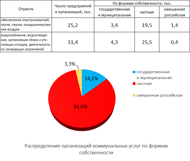 Таблица 1. Распределение ресурсоснабжающих организаций по формам собственности