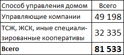 Таблица 2. Распределение компаний на рынке жилищных услуг