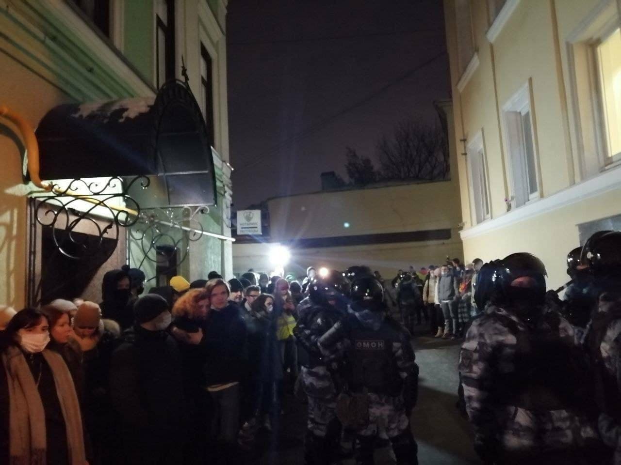 Мы оказались зажаты с обеих сторон. Силовики начали нещадно избивать людей дубинками. В отчаянии люди ломанулись в один из дворов в этом переулке, преодолев железные ворота, но и там другого выхода не нашлось — это была небольшая «коробка» с единственным входом. Оказавшись у этого входа, прямо перед толпой силовиков, мы с Аглаей обнялись, чтобы нас не разделили и не посадили в разные автозаки. Именно так, парой, нас и повели по «коридору» из космонавтов, ведущему прямо до двери автозака.