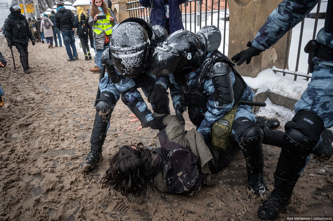 А из-за того, что по данным ОВД-инфо количество задержанных 23-го января превысило 4000 человек, а 31-го — 7000 человек, многие из которых оказались арестованы на срок до 30 суток просто за то, что реализовывали своё конституционное право. Из-за того, что многие города оказались перекрыты военной техникой, заставляя нас вспомнить об оккупации времён Второй Мировой Войны.