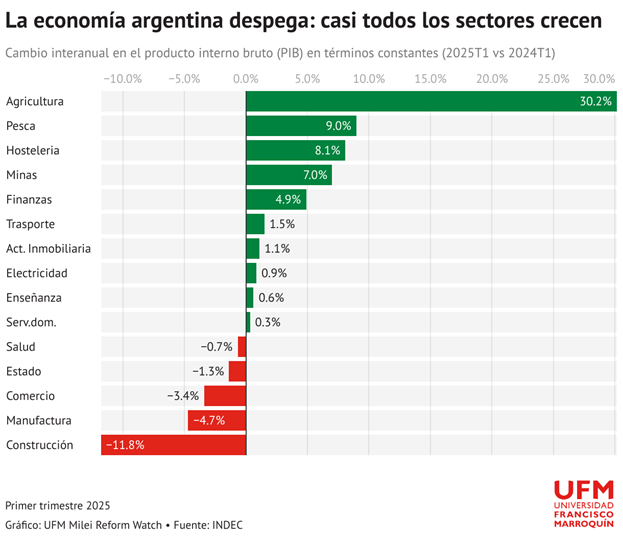 Эти макроэкономические изменения начали оказывать ощутимое влияние на иностранные инвестиции. Конференция ООН по торговле и развитию (ЮНКТАД) отметила, что Аргентина привлекла 7,4 млрд долларов США прямых иностранных инвестиций в 2024 году, что на 48% больше, чем в предыдущем году, и является самым высоким показателем с 2017 года. Инвестиции в новые проекты резко возросли в таких ключевых секторах, как горнодобывающая промышленность, энергетика и логистика. В провинциях Жужуй, Катамарка и Сальта были сделаны крупные инвестиции в добычу лития и меди, а такие компании, как Enel и TotalEnergies, расширили проекты в области солнечной и ветроэнергетики. Секретариат горнодобывающей промышленности Аргентины сообщил о более чем 4,1 млрд долларов США новых инвестиций в горнодобывающую промышленность в период со второго квартала 2023 года по первый квартал 2025 года. Фондовый индекс Merval вырос в 2024 году почти на 140%.