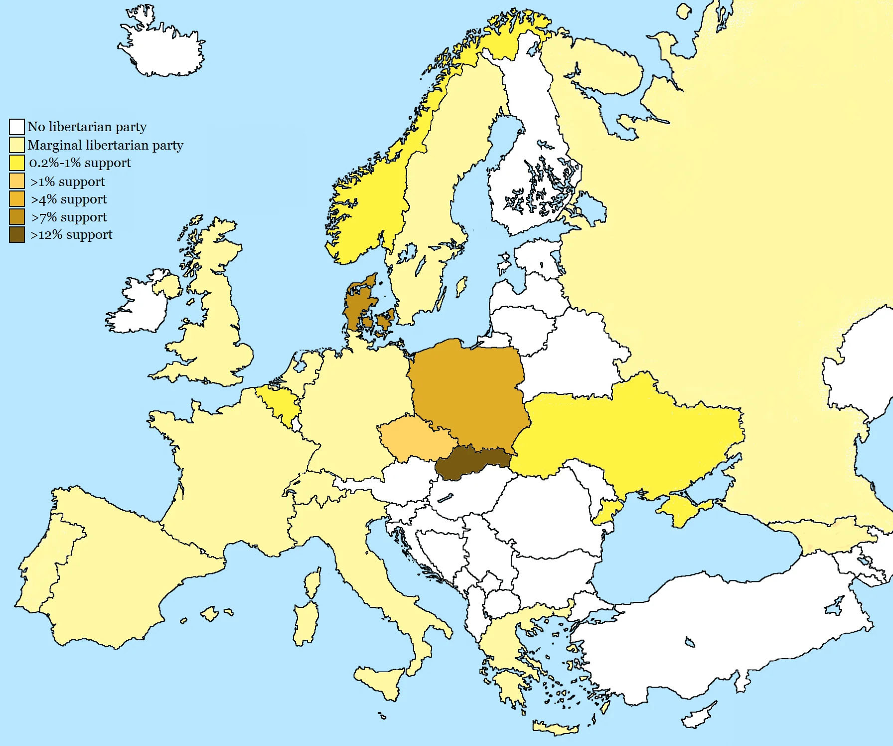 Кажется, в противовес всё большей сплоченности либертарианских движений в СНГ и обеих Америках, европейское либертарианство пытается выживать обособленно и потому с переменным успехом. Вместе с тем протесты последних лет показали, что многие граждане ЕС не согласны с местной и общеевропейской номенклатурой в вопросах экономики, частной собственности и фундаментальных прав, а, значит, в ближайшие годы сторонников либертарианства, пусть и не всегда активных, станет только больше. И на местных либертарианских движениях лежит задача по конвертации этих сторонников свободы в свой электорат.